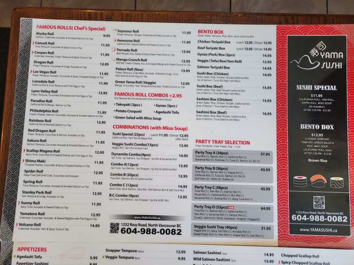 Welcome to Yama Sushi, a delightful Japanese restaurant nestled in North Vancouver at 1232 Ross Rd. Known for its generous portions and fresh ingredients, Yama Sushi excels in both takeout and dine-in experiences. Customers rave about the extensive menu, which includes mouthwatering options like the Chicken Teriyaki and the crunchy Tempura, all at reasonable prices.